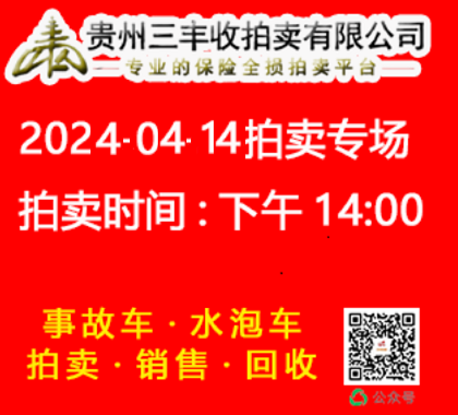 貴州三豐收拍賣有限公司網絡拍賣于2024年4月14日下午14點準時開拍 請需要拍賣車輛的會員 通過二維碼繳納拍賣保證金或者致電我司繳納保證金 0851-86711666 18275321810 13378515056 18268322089 人工審核
